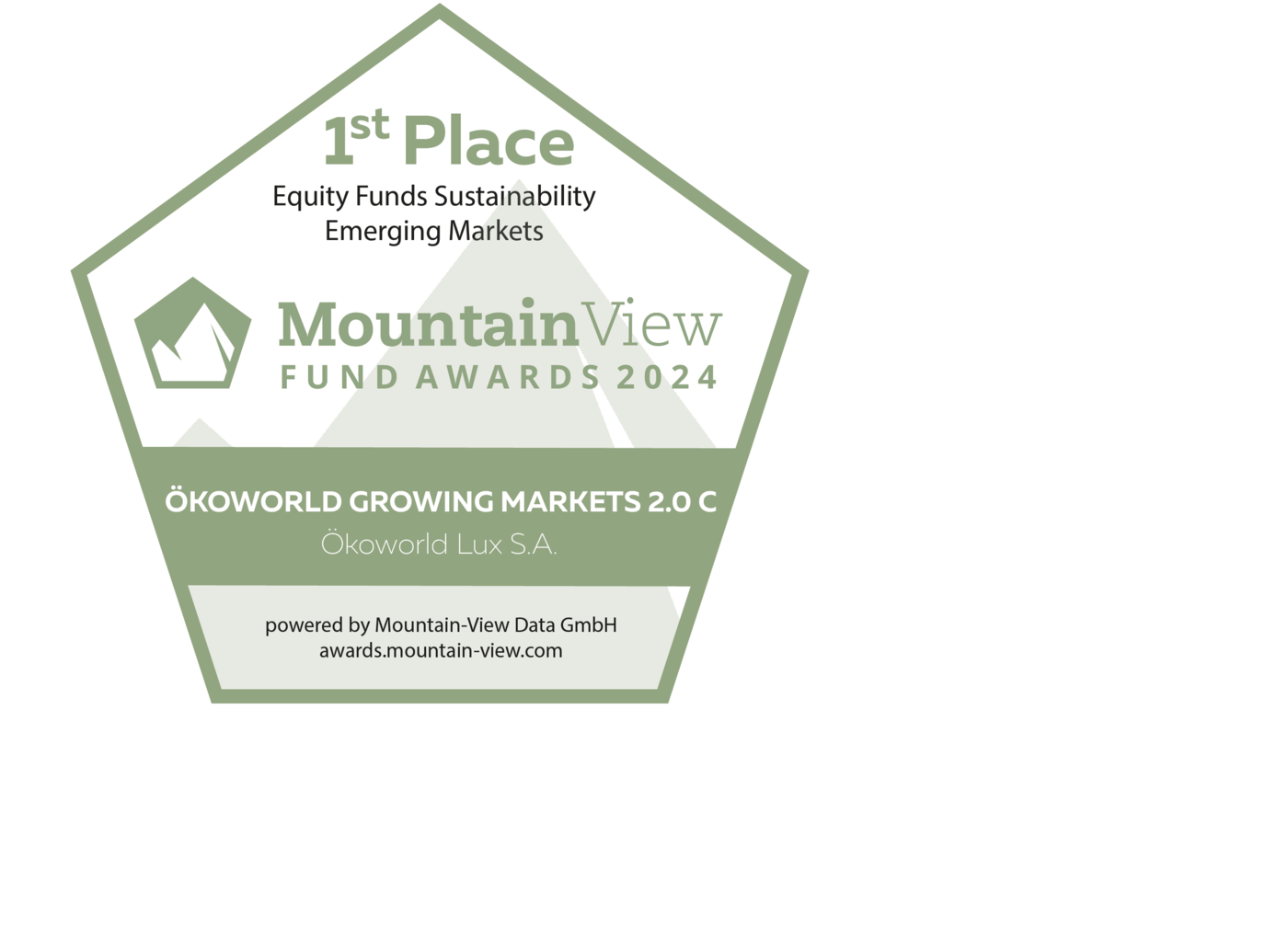 Der ÖKOWORLD GROWING MARKETS 2.0 konnte in der Kategorie Equity Funds Sustainability Emerging Markets überzeugen und hat den begehrten Mountain View Fund Award 2024 erhalten.