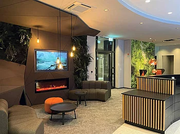 Im Jahr 2020 wurden im Erdgeschoss unseres Firmensitzes Itterpark 1 neue Räumlichkeiten angemietet und komplett und aufwendig umgebaut zu einer modernen ÖKOWORLD Erlebniswelt. Selbstverständlich mit dem Ziel, dort Kundinnen und Kunden – insbesondere aus der Region face-to-face – zu empfangen und auch Veranstaltungen und Events durchzuführen. Ein Teil der Umbaumaßnahmen wurde im Dezember 2020 abgeschlossen. Die komplette Fertigstellung der Mieteinbauten mit allen Details soll voraussichtlich bis Ende des Jahres 2021 vollständig erledigt sein. Die umfassende Nutzung und der tägliche Kund:innenbetrieb kann sich selbstverständlich erst richtig entfalten, wenn die pandemiebedingten Einschränkungen sich normalisieren. Dann wird die „ÖKOWORLD-Erlebniswelt“ viele Kundinnen und Kunden begeistern und als wahrer Magnet fungieren, um mehr Menschen in die persönliche Beratung zu bringen.