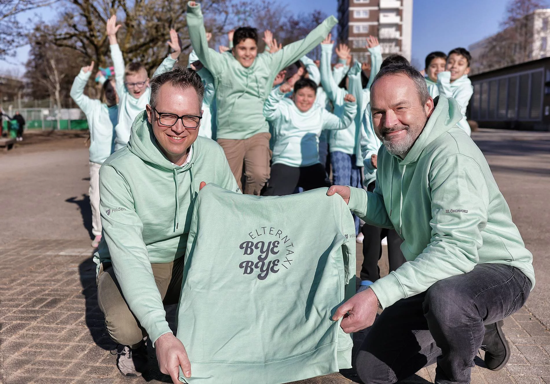 Dank der Unterstützung von der ÖKOWORLD konnte die Aktion „Bye Bye Elterntaxi“ umgesetzt werden. Ziel der Initiative ist es, den Autoverkehr rund um die Schulen in Hilden zu reduzieren und den Kindern einen sicheren, umweltfreundlichen Schulweg zu ermöglichen.