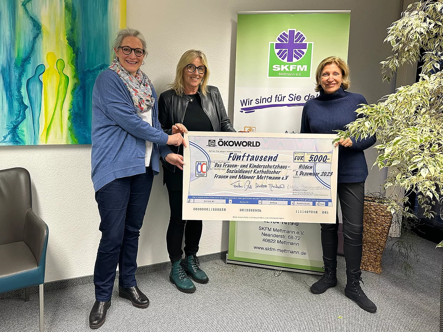 Andrea Machost, Vorständin der ÖKOWORLD, war zu Besuch bei Lilo Löffler, Vorstandsvorsitzende des SKFM Mettmann, und der Bereichsleiterin Eva-Maria…
