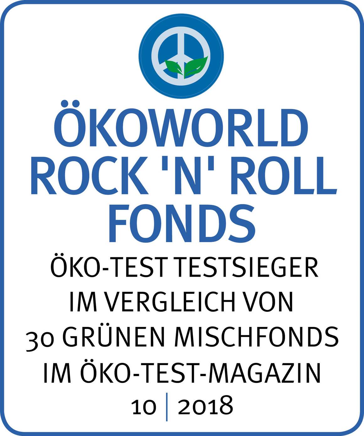 Im Ökotest-Magazin 10/2018 steht der ÖKOWORLD ROCK 'N' ROLL FONDS im Vergleichstest mit 30 grünen Mischfonds auf dem 1. Rang.