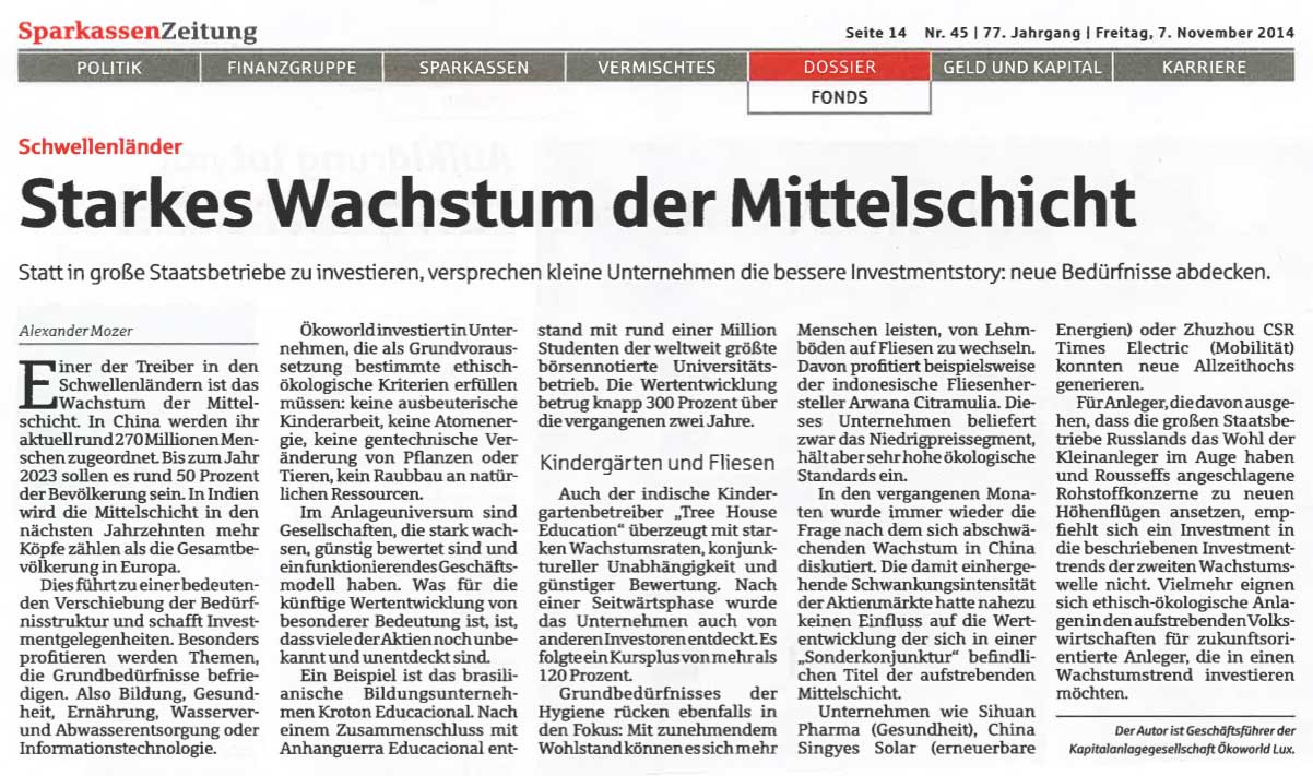 SPARKASSENZEITUNG: Starkes Wachstum der Mittelschicht