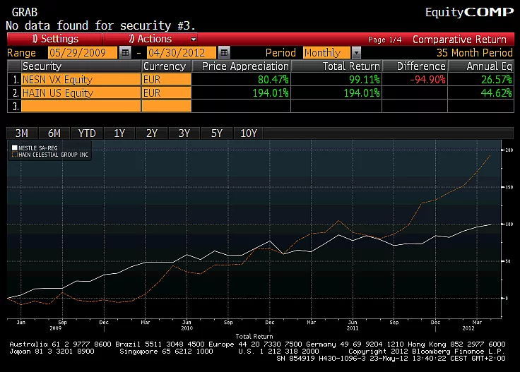 Die Hain Celestial Group überzeugt an der Börse: Der Bio-Lebensmittel Anbieter trumpft auf mit einem Plus von über 194% (in €) innerhalb der letzten drei Jahre und schmeckt den nachhaltigen Anlegern. Im Vergleich musste sich Nestlé mit 99% (in €) zufrieden geben.